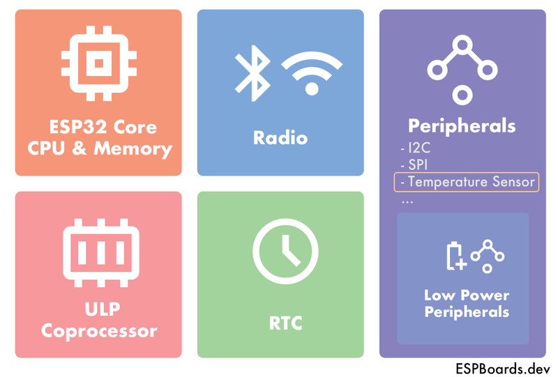 - The temperature sensor is not present. Sometimes, the ESP-IDF and Arduino Core do not detect, that the temperature sensor is not present on the chip and compile without any errors. However, if the temperature stays the same no matter the CPU frequency or load, probably the chip does not have a temperature sensor.