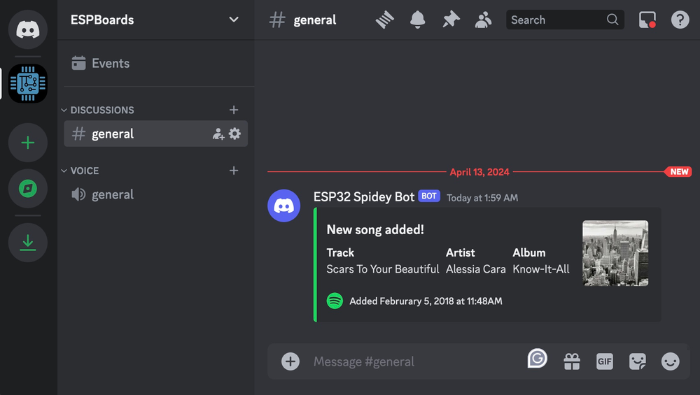 })";This example could be used for an application that integrates ESP32 and Spotify and sends the updates to Discord.