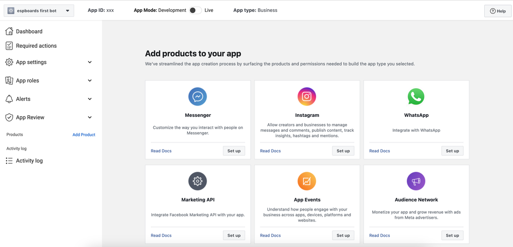 Look for the “WhatsApp” option in the left-hand menu. Next to it, you’ll see a “Set Up” button. Click on “Set Up” to start configuring the WhatsApp API for your app.