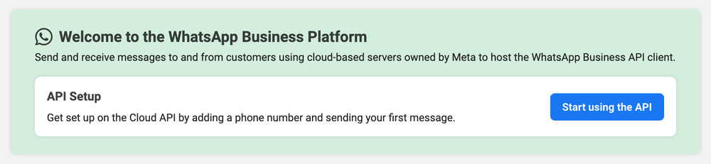 Once you’ve clicked “Set Up” for WhatsApp, you’ll see the option to “Start using the API.” Here’s what to do next: