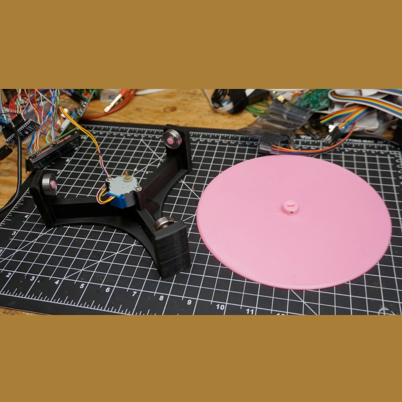 The foundation for this build came from a great minimalist design using a Stepper motor, a 608 bearing, and a 3D-printed frame. Super clean and effective!