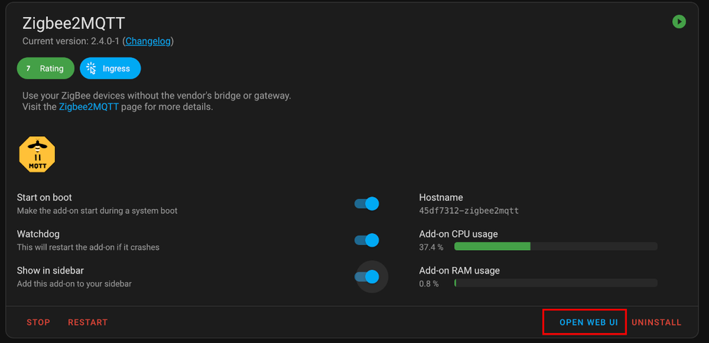 - (Optional) Enable Show in sidebar - this makes it easier to access the Zigbee2MQTT dashboard during setup.