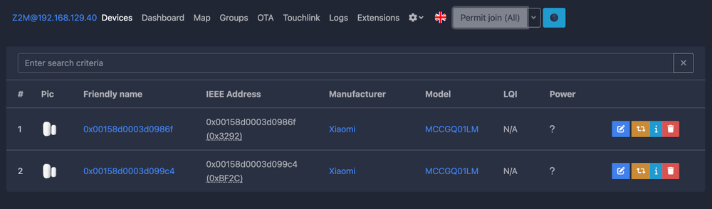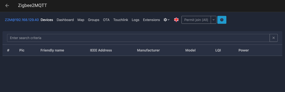 - Click “Permit join (All)” - this allows new devices to join your Zigbee network for a limited time.