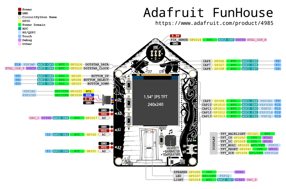Complete pinout and GPIO mapping for Adafruit FunHouse
