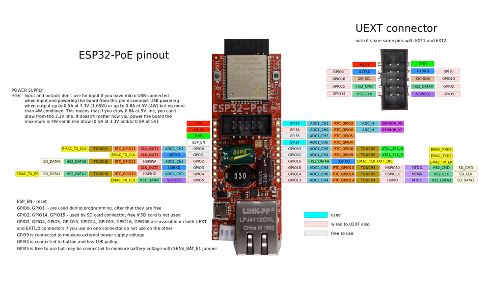 Complete pinout and GPIO mapping for OLIMEX ESP32-PoE
