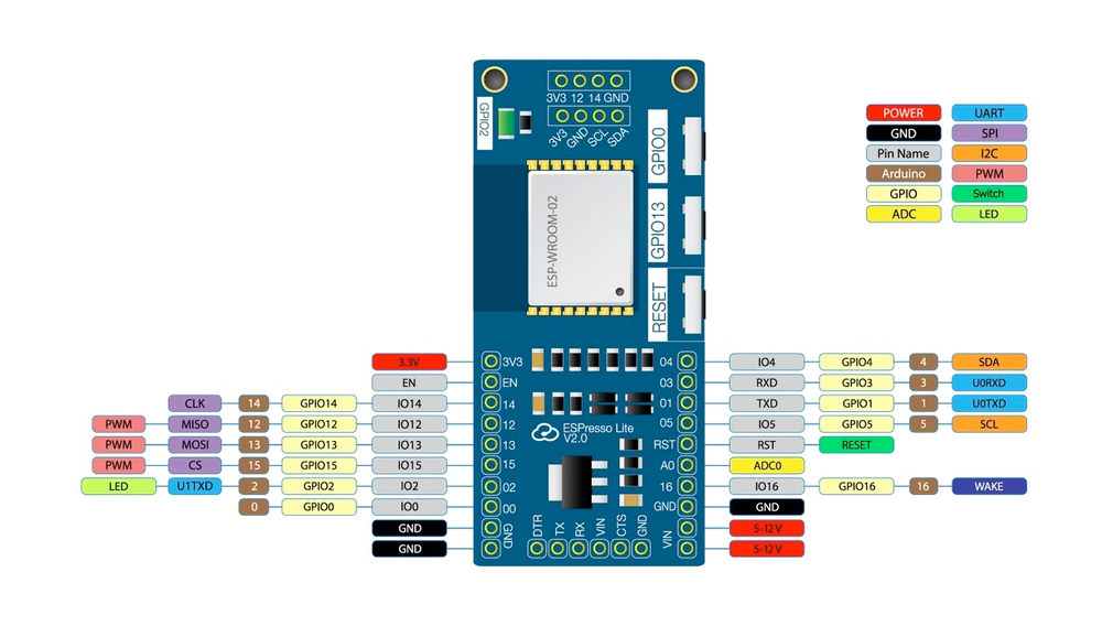 Complete pinout and GPIO mapping for ESPresso Lite 1.0