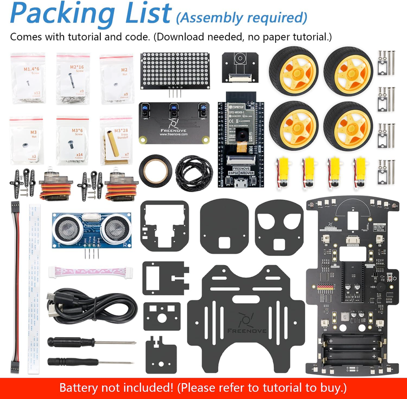Get all the essential components you need to build, code, and control a fully functional smart robot - no experience required. The Freenove 4WD Car Kit is a complete, beginner-friendly package designed to help you learn, create, and have fun right out of the box.